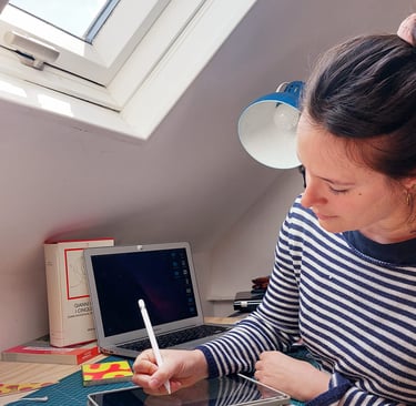 Illustratrice autodidacte, c'est à la trentaine galopante, et à l'aide de la période du confinement, que je me rends compte que l'illustration est pour moi un vrai moyen d'expression, sinon un moyen thérapeutique... mieux vaut tard que jamais, non ?